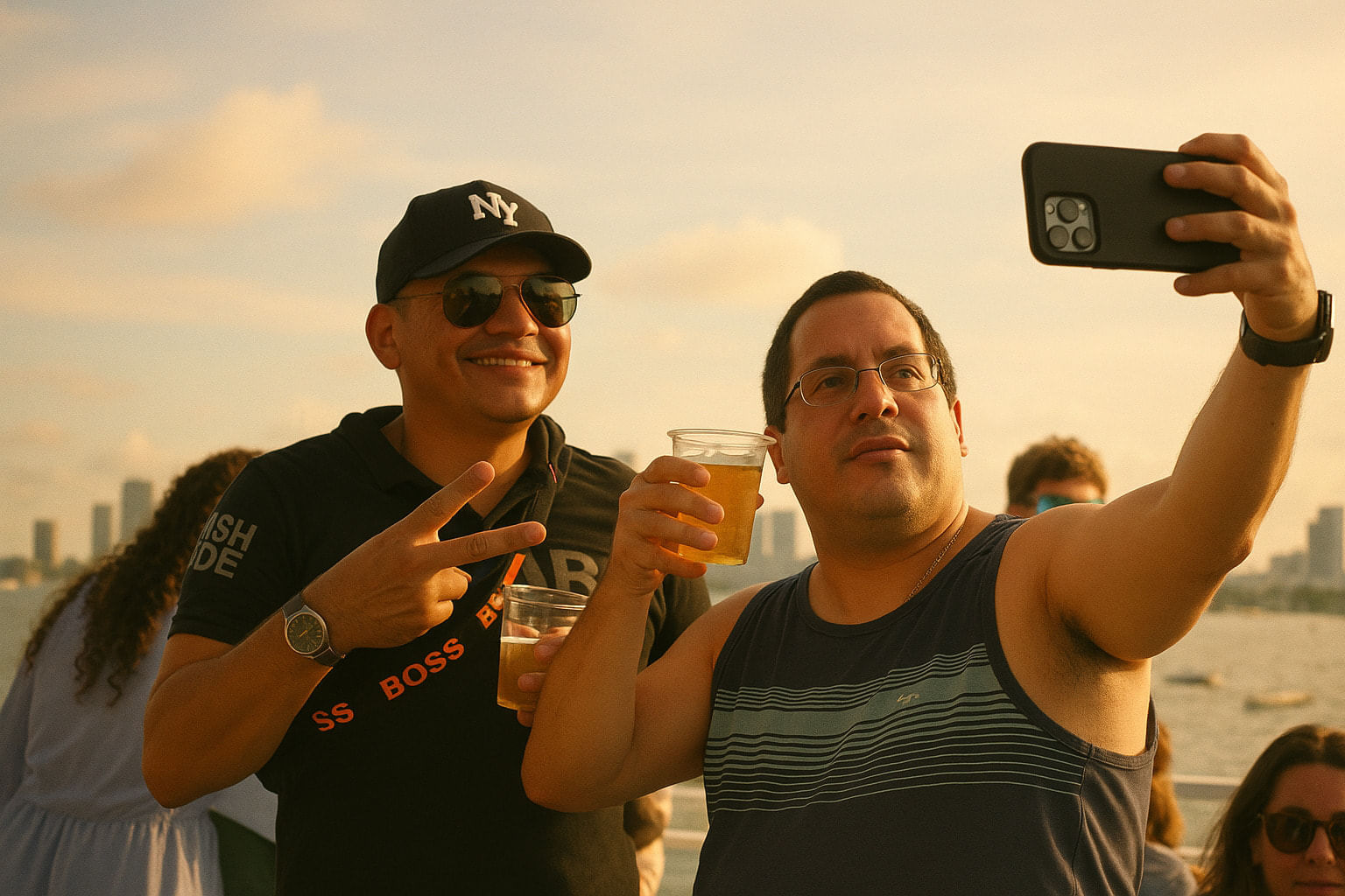 The highlight of your trip is the exclusive Mojito Bar Onboard — the only one of its kind in Miami. Enjoy freshly prepared mojitos, cocktails, and light refreshments while the sky transforms into shades of gold, pink, and purple. The Mojito Bar operates as a cash bar, with both credit cards and cash accepted for your convenience.