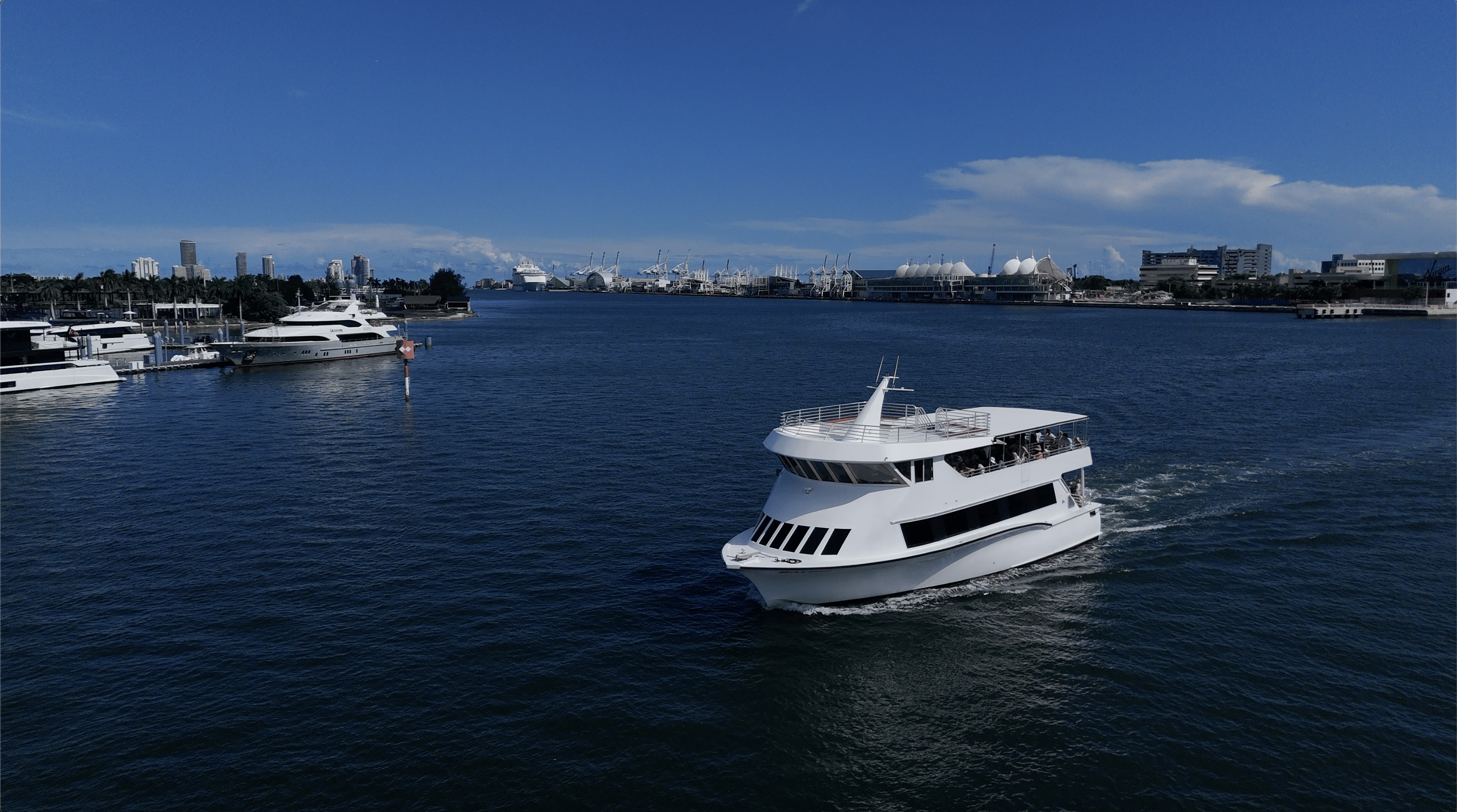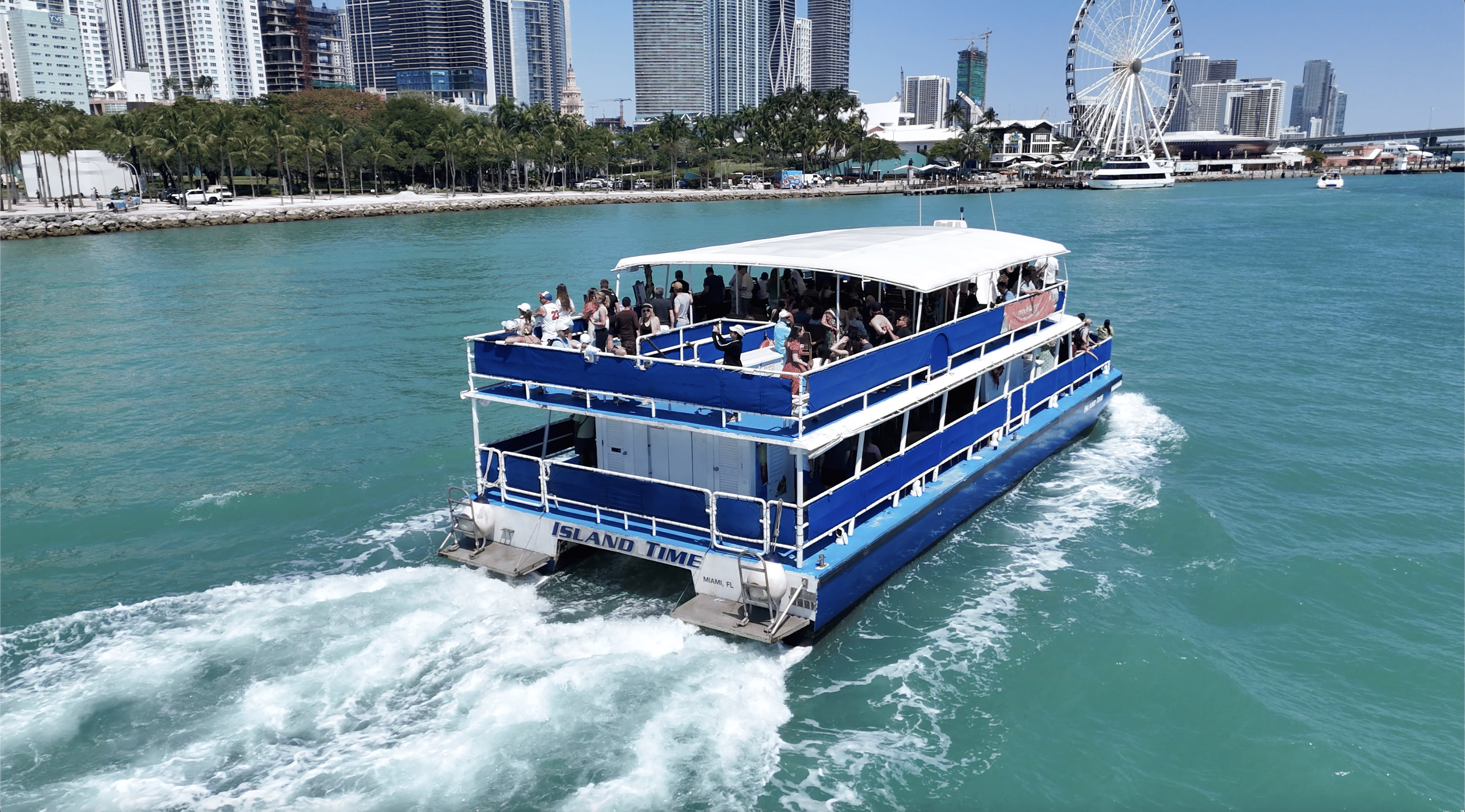 - 90-Minute Sightseeing Cruise – Cruise through Biscayne Bay and take in incredible skyline views of Downtown Miami, Port of Miami, and Fisher Island.